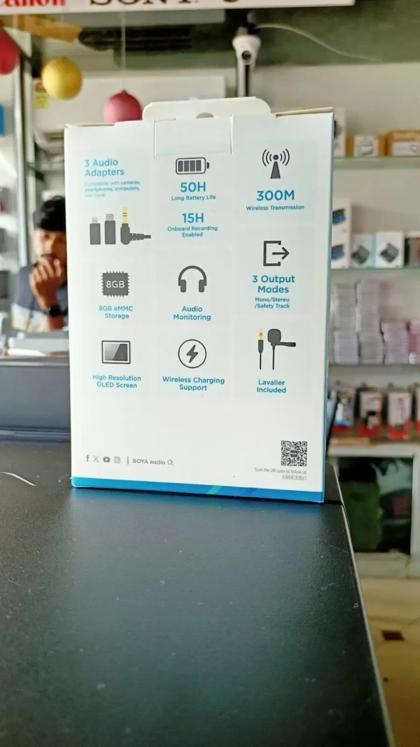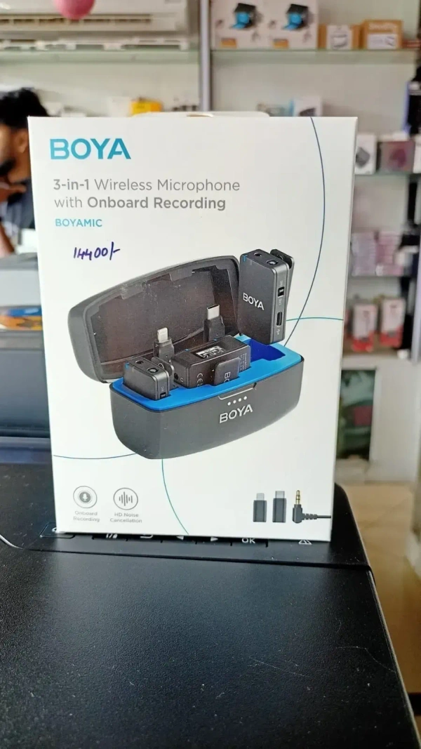 BOYA 3 IN 1 WIRELESS MICHROPHONE WITH ONBOARD RECORDING