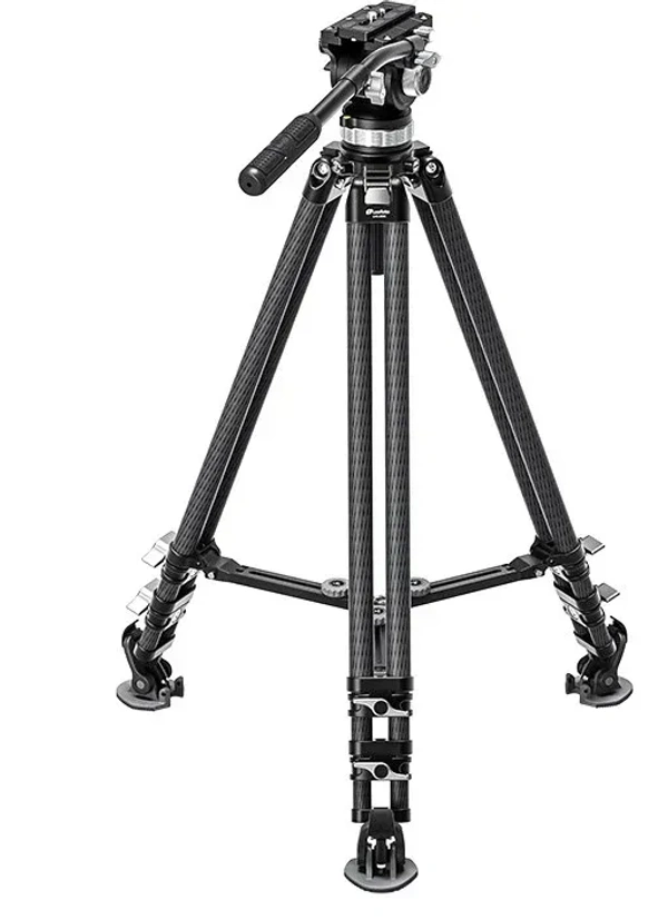 This tripod from Leofoto stands on dual-tube legs made from 10-layer Toray carbon fiber. Carbon fiber's durability and rigidity allows the LVC-253C to carry camera rigs as heavy as 55.1 lb at a maximum height of 61.4". The versatility of this platform is represented by the configurable mounting system. Tripod heads compatible with 75mm bowls mount directly, while cameras and tripod heads that accept 3/8"-16 threaded studs can be attached with the included leveling base. The rim of the bowl sports two 3/8"-16 and one 1'4"-20 female threads for mounting monitors or other additional camera accessories (available separately).An included center spreader is suitable for use at mid- or ground-level, further emphasizing the flexibility of this tripod system. An adjustable spreader height helps to accommodate different shooting locations or circumstances. Each arm of the spreader features a wide knob for comfortable and easy adjustment. The spreader allows you to fold the tripod with a single motion, important for high-intensity shoots with multiple locations.