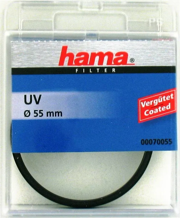 Hama 55mm UV Filter C (XXV): Provides basic UV protection with a clear filter, maintaining image clarity.
