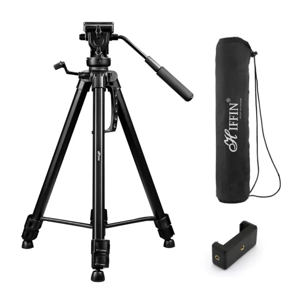 Head Type: Features a 3-way pan head with a fluid video head, allowing smooth panning and tilting motions for video shoots.