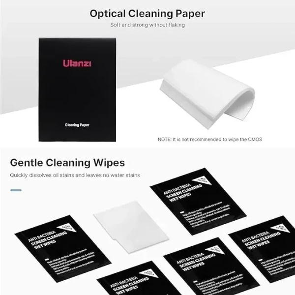 - 【Lens Cleaner & Cleaning Cloth】 ULANZI developed this lens cleaner for optical lenses, mild and alcohol-free, easily dissolves stubborn stains and protects optical lenses scientifically. It can be used with the lens cleaning cloth to protect the lens coating without damaging it.