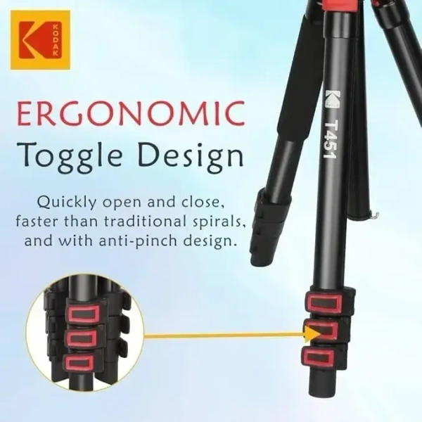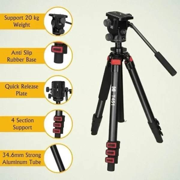 Kodak T451 Pro 34.6 Mm Four Section Support Flip Locks Tripod, Black