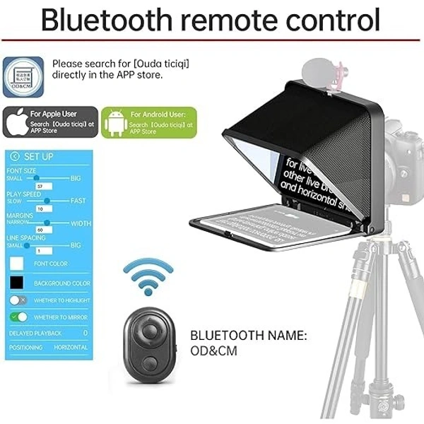 - 【Bluetooth Remote Control】Download the free APP(Ouda ticiqi) from App store or Play store to your smart phone or tablet to display the manuscript with remote controller, you could freely turn on , pause, speed up or down the page. And also could change the color of background and font.