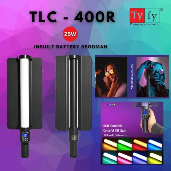 - TLC- 400R STICK VIDEO LIGHT Kit features provide flicker-free illumination, 3000K- 6500K color temperature, a 10%~100% dimming range, and 360° RGB colors. With incomparable versatility, this kit is perfect for vlogging, portraits, weddings, product photography, video gaming, and Zoom calls. [18 Lighting Mode]-RGB LED video light has 18 Lighting Mode, Simulated Lightning, Police scene, Ambulance scene, Fire truck scene, RGB scene, Candlelight scene, SOS scene and more scene to fit your different needs.