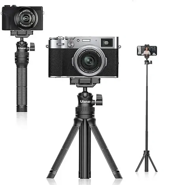 ULANZI MT-34 Extendable Pole Tripod, Selfie Stick with 2 in 1 Phone Clamp, Handle Grip 1/4" Universal Screw, Compatible iPhone 11 Pro Max XS Max X 8 7 Samsung Canon Nikon Sony Cameras, Black