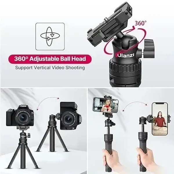 - 【360° Adjustable Ballhead】: The tripod ballhead is 360° Adjustable. Which allows you shooting from various angles. Supports horizontal and vertical video shooting.