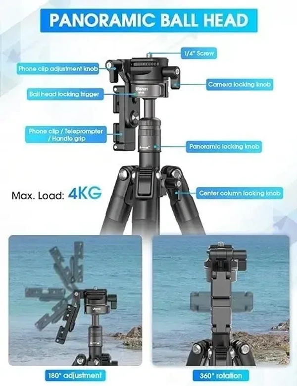 - Innovative Phone Clip Design: ULANZI's first reversible multifunctional mobile phone clip tripod MT-63 can not only be used as a mobile phone teleprompter or mobile phone stand, but can also be folded up and used as a tripod handle, which is very convenient and durable. Clamping range: 55-85mm/2.16"-3.35".